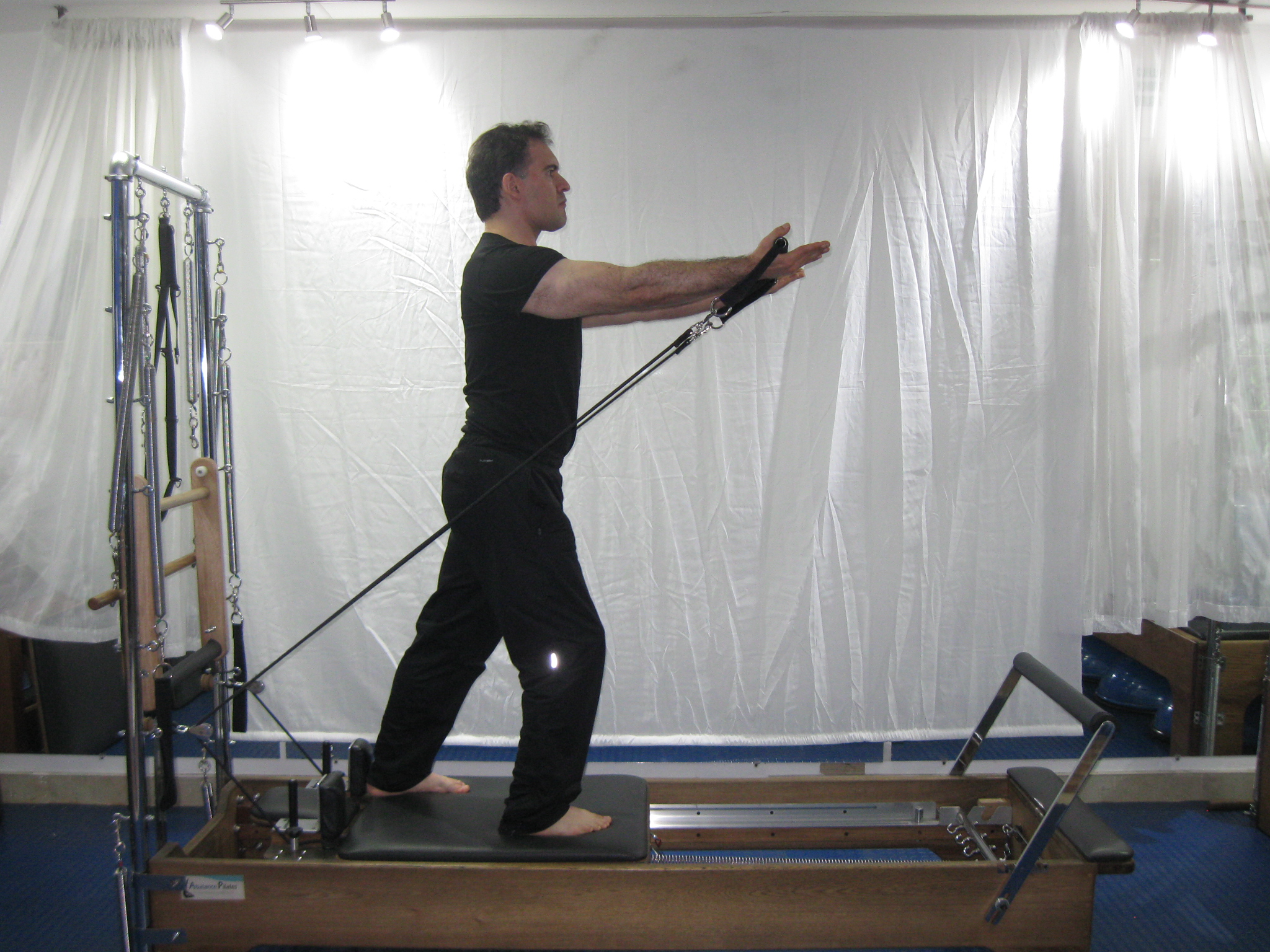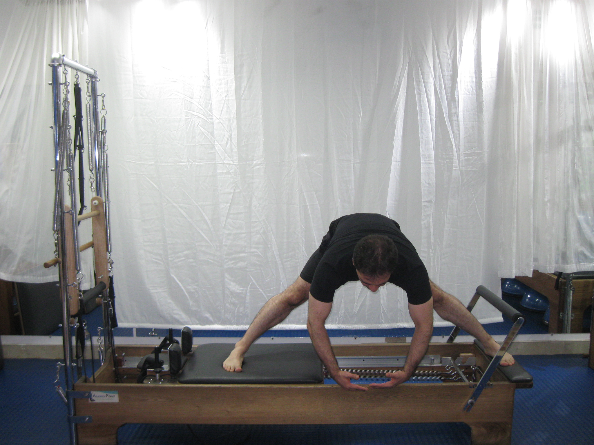 La forma correcta de ingresar en el reformer, para la realización de los ejercicios de apoyos de manos en la barra, como es el caso de las series long stretches, el ingreso se realiza de la siguiente forma: MANO - PIE, MANO - PIE