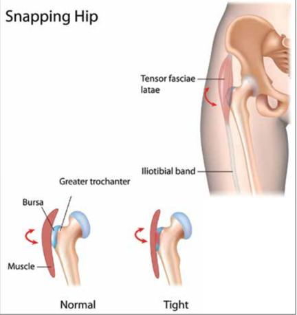 • Se produce por el deslizamiento de la banda iliotibial o el glúteo mayor sobre el trocánter mayor.